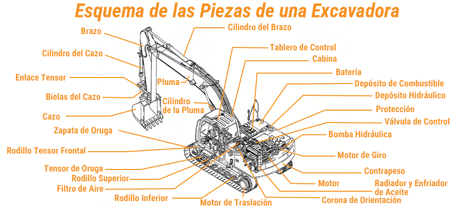 Cada componente de la excavadora trabaja en conjunto para facilitar tu trabajo. Conocer estas partes y sus funciones te ayudará a manejar el equipo con mayor destreza. Además, al tener un conocimiento claro de los repuestos de tu excavadora, podrás identificar y reparar con precisión qué accesorio presenta fallas, reemplazando oportunamente las piezas necesarias de manera rápida y eficiente.